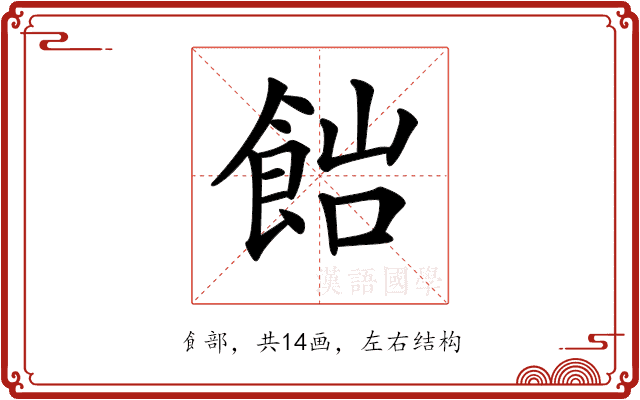 𩛎〕字拼音是(mǎn),部首是飠部,总笔画是14画