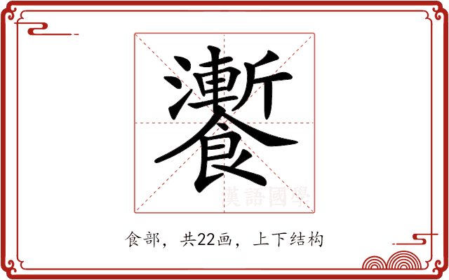 〔𩟗〕字拼音是(jiǎn),部首是食部,总笔画是22画。