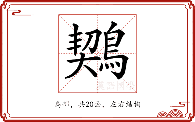 〔𪃈〕字是左右结构,可拆字为“契、鳥”。