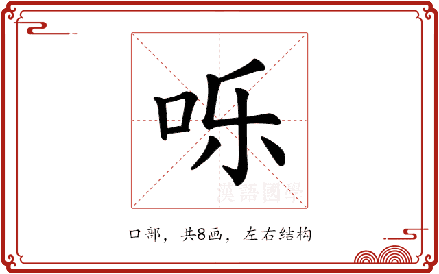 〔𪠸〕字是多音字,拼音是(hù、yo),部首是口部,总笔画是8画。