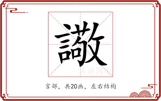 〔䜘〕字是左右结构,可拆字为“言、敬”或“訁、敬”。