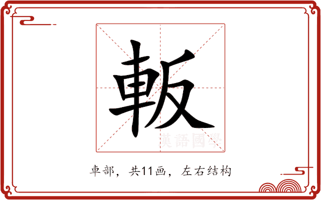 纠错〔䡊〕字是多音字,拼音是(fán、fǎn、pèi),部首是車部,总笔画是11画。