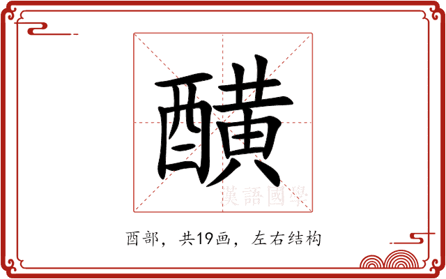 〔䤑〕字是左右结构,可拆字为“酉、黄”或“酉、黃”。