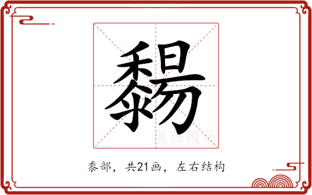 〔䵘〕字是左右结构,可拆字为“黍、昜”。