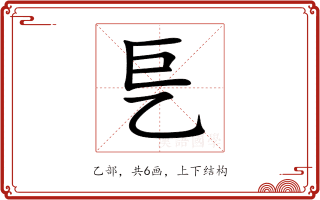 〔乬〕字是上下结构,可拆字为“巨、乙”。