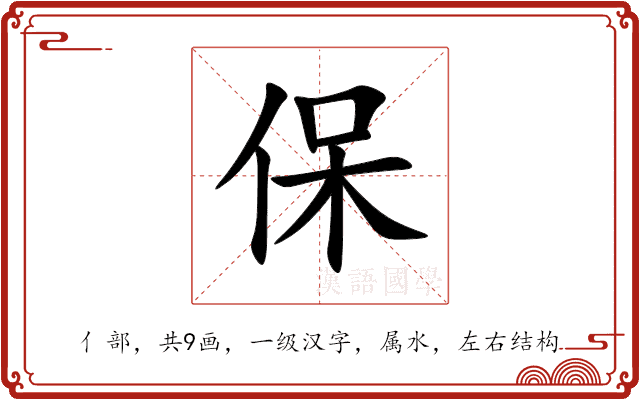 〔保〕字是左右结构,可拆字为“亻、呆”,五行属水。
