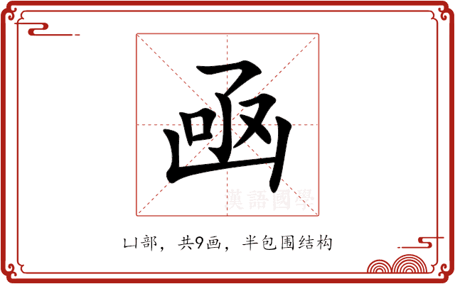 〔凾〕字拼音是(hán),部首是凵部,总笔画是9画。
