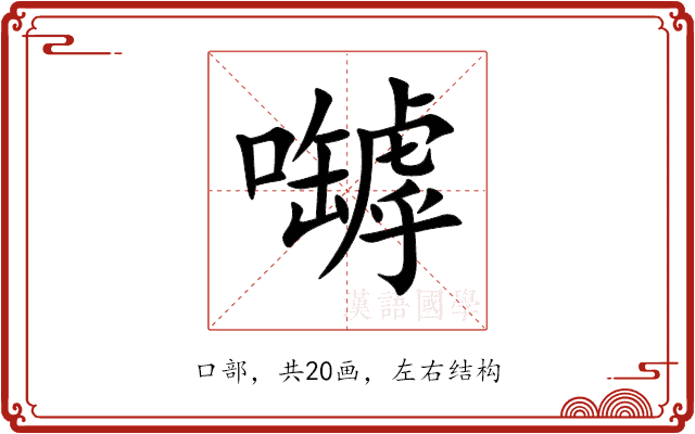 纠错〔嚹〕字拼音是(lá),部首是口部,总笔画是20画。