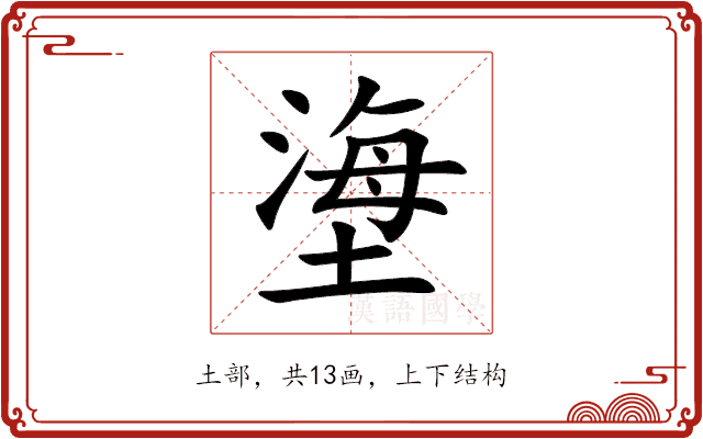〔塰〕字是上下结构,可拆字为“海、土”。