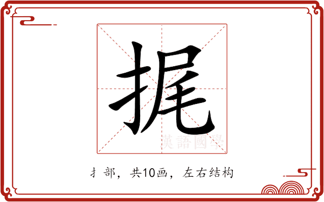〔捤〕字是左右结构,可拆字为“扌、尾”。