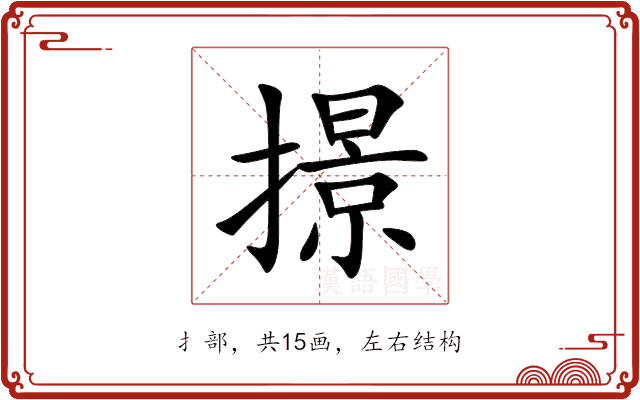 〔撔〕字是左右结构,可拆字为“扌、景”。