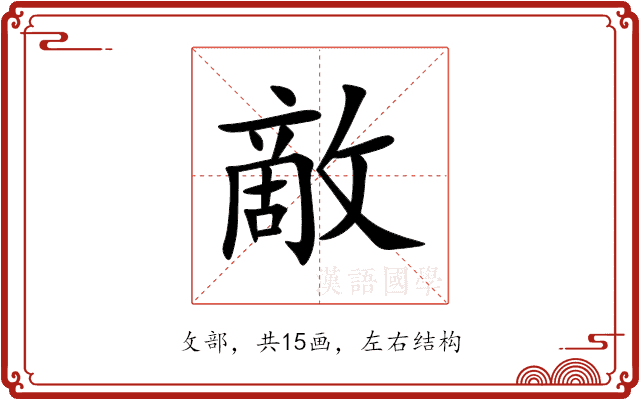 〔敵〕字拼音是(dí),部首是攵部,总笔画是15画