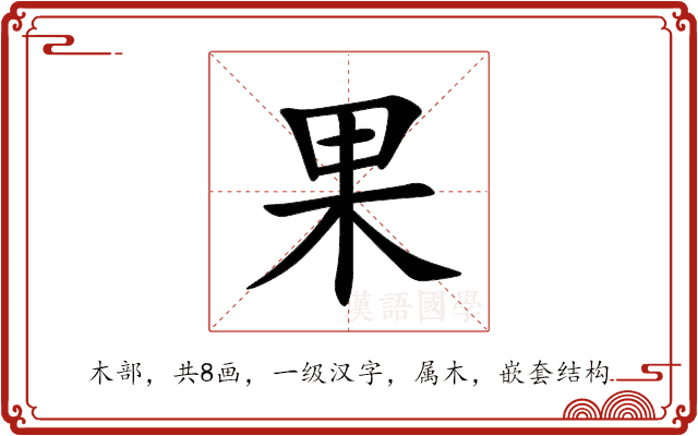 〔果〕字是嵌套结构,可拆字为“甲、𠆣”,五行属木。