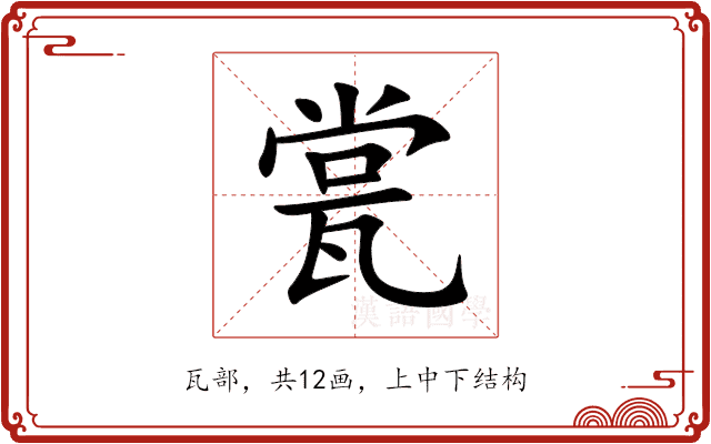 复制瓦部共12画上中下结构U+74FDCJK 基本汉字