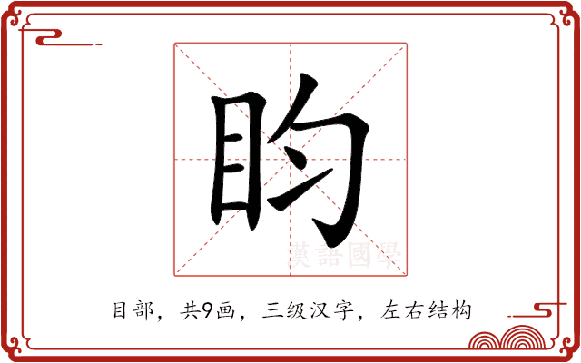 〔盷〕字是多音字,拼音是(xián、tián),部首是目部,总笔画是9画。