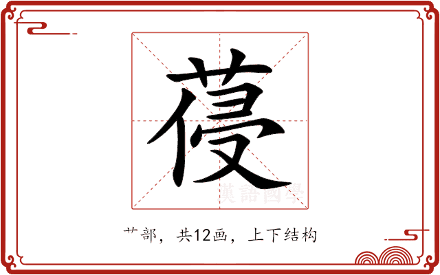 〔葠〕字是上下结构,可拆字为“艹、侵”。