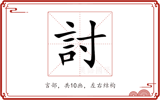 討,治也。 —— 《說文》討,誅也。 —— 《玉篇》其君無日不討國人而訓之。 —— 《左傳·宣公十二年》楚人討 陳叛。 —— 《左傳·襄公五年》