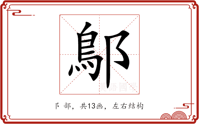 复制阝部共13画左右结构U+9125CJK 基本汉字