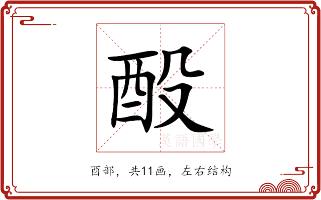 酘,位于中日韩统一表意文字 (基本汉字),Unihan编码U+9158,读音是(dòu),酉部,共11画,左右结构。