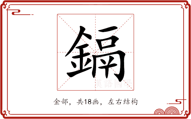 〔鎘〕字是多音字,拼音是(gé、lì),部首是金部,总笔画是18画