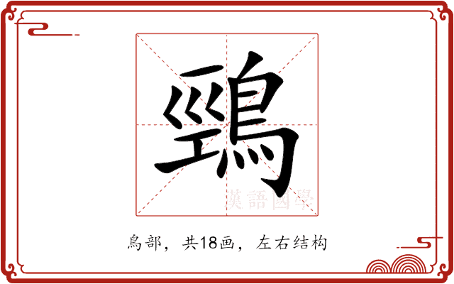 鵛,位于中日韩统一表意文字 (基本汉字),Unihan编码U+9D5B,读音是(jìng),鳥部,共18画,左右结构。