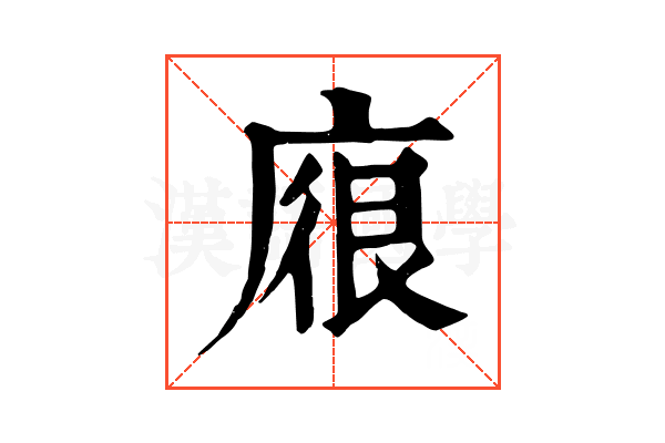 〔𢉟〕字左上包围结构,可拆字为广、很。