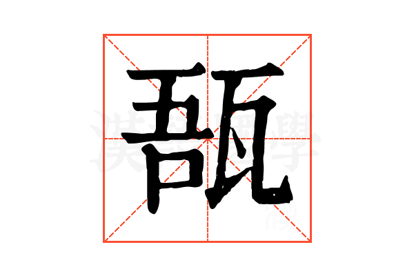 𤭑〕字拼音是,左右结构,可拆字为吾、瓦