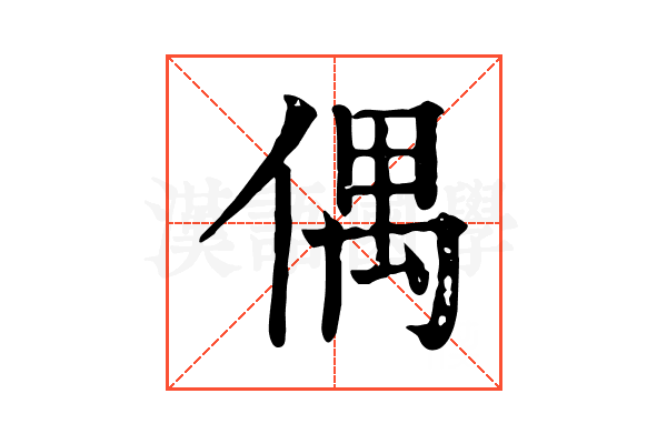 〔偶〕字的汉语字典解释:㈠ [ǒu] ⑴ 用木头或泥土等制成的人形⑵ 双,对,成双成对,与“奇( jī )”相对⑶ 事理上不一定要发生而发生的⑷ 指丈夫或妻子