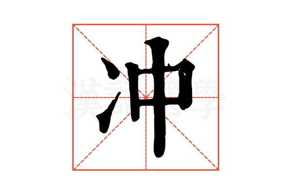 〔冲〕字的汉语字典解释: [chōng] ⑴ 用水或酒浇注,水撞击⑵ 向上钻,直上⑶ 破解不祥⑷ 空虚,谦虚:“大盈若~,其用不穷”。~挹( yì )。谦~。⑸ 幼小⑹ 方言,山区的平地⑺ 通行的大路,重要的地方⑻ 不顾一切,一直向前⑼ 猛烈地撞击⑽ 收支账目互相抵销⑾ 情感强烈⑿ 太阳系中,除水星和金星外,其余的某一个行星进行到与地球、太阳成一条直线而地球正处在这个行星与太阳之间的位置时称“冲”。 [chòng] ⑴ 对着,向着⑵ 凭,根据⑶ 猛烈;强烈⑷ 一种使金属板成形或在金属板上打孔的专用设备称“冲床”。⑸ 在冲床上加工金属工件