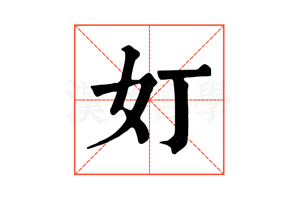〔奵〕字是多音字,拼音是dǐng、dīng、tiǎn,左右结构,可拆字为女、丁。