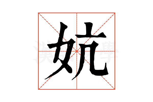 〔妔〕字是多音字,拼音是kēng、háng,左右结构,可拆字为女、亢。