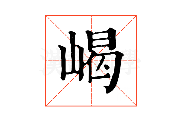〔嵑〕字是多音字,拼音是kě、jié,左右结构,可拆字为山、曷