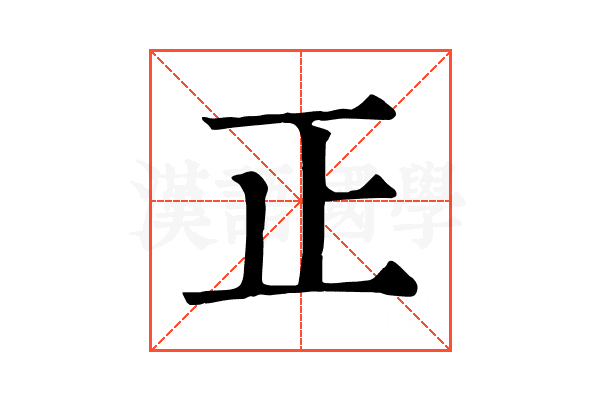 音《唐韻》、《韻會》、《正韻》𡘋之盛切,音政。《說文》:是也,从止一以止。【註】守一以止也。《新書・道術篇》:方直不曲謂之正。《易・乾卦》:剛健中正。《公羊傳・隱三年》:君子大居正。