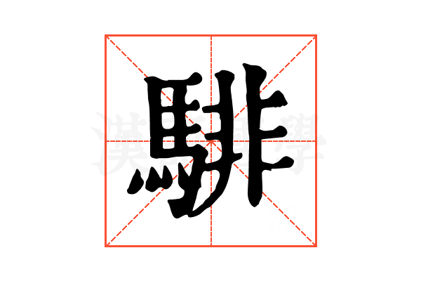 〔騑〕字的汉语字典解释:㈠ [fēi] ⑴ 驾在车辕两旁的马:“俨骖~于上路,访风景于崇阿。”