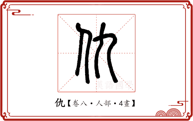 此字始見於篆文。篆文作,由「人」、「九」二字構成。「人」表義,「九」表音。表示聲氣相應、回應。隸書、楷書承之而定體。從人、九聲,在六書中屬於形聲。