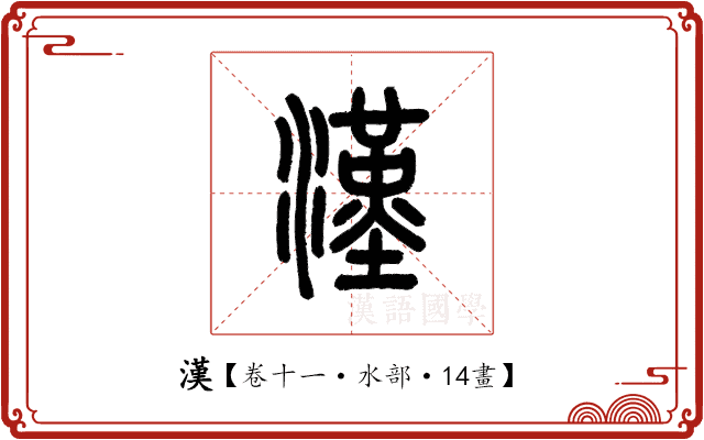 金文之字形從水、難聲,篆文從水,難省聲。從水,表示與水相關;難省聲,表示音讀。隸變作、楷定作漢。在六書中屬於形聲。《說文》古文從淢、從大會意。規範字作「汉」。