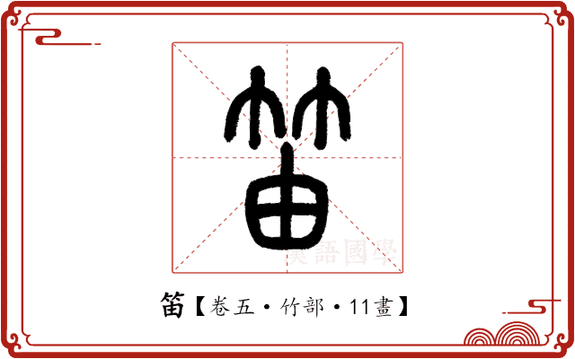 笛,七孔管乐器。字形采用“竹”作边旁,“由”是声旁。而羌笛则为三孔。