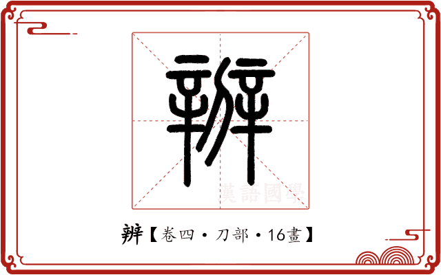 附注桂馥義證:「辧,隸作辨,刀變為刂,與𤤻作班同。」