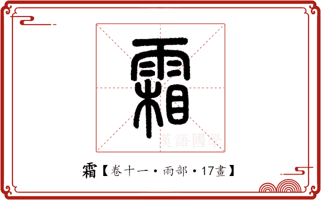 霜,使万物丧失生机的东西,也是促进部分作物成熟的东西。字形采用“雨字头”,“相”是声旁。