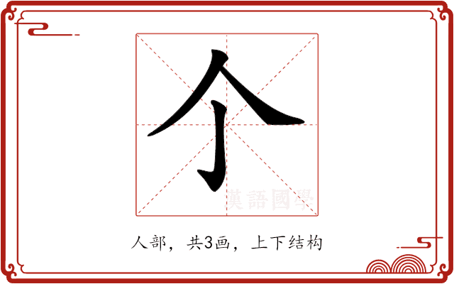 〔𠆤〕字是上下结构,可拆字为“人、亅”。