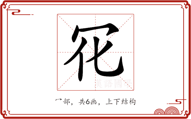 〔𠕿〕字拼音是(wāng),部首是冖部,总笔画是6画。
