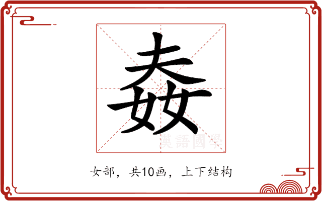 纠错〔𡝉〕字拼音是(cū),部首是女部,总笔画是10画。