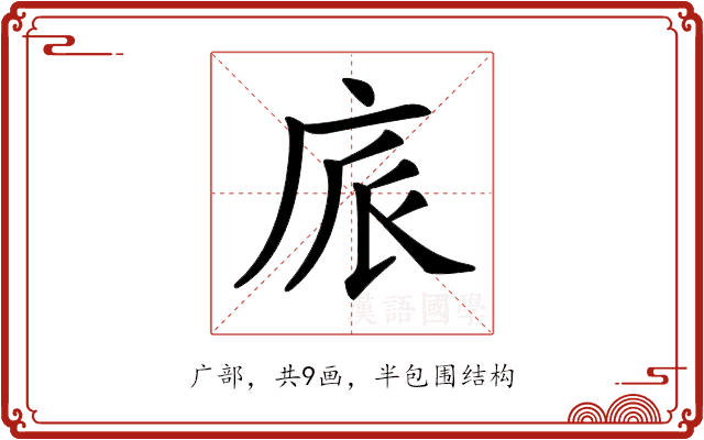 𢈕〕字拼音是(bài),部首是广部,总笔画是9画