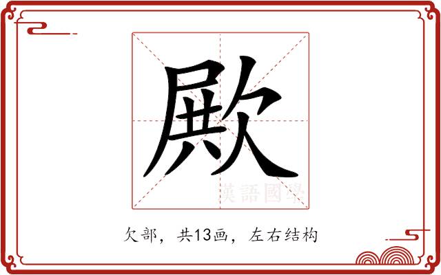 𣣣〕字拼音是(diàn),部首是欠部,总笔画是13画