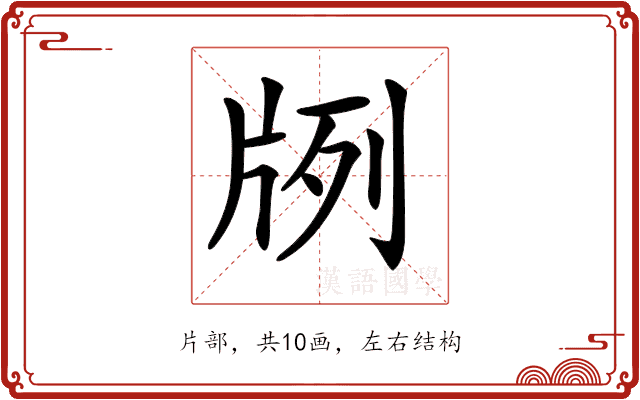 𤖺〕字拼音是(liè),部首是片部,总笔画是10画