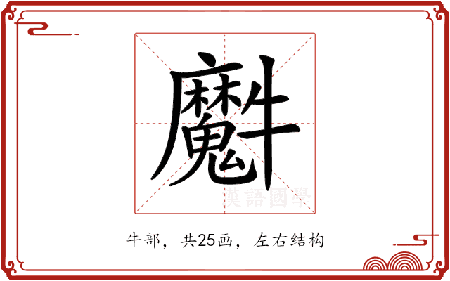 𤜘〕字是左右结构,可拆字为“魔、牛”。
