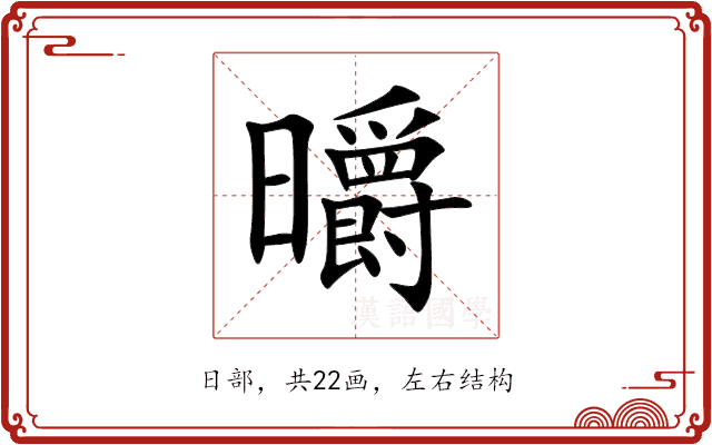 〔㬭〕字是左右结构,可拆字为“日、爵”。