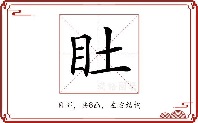 〔𥃾〕字拼音是(dù),部首是目部,总笔画是8画。