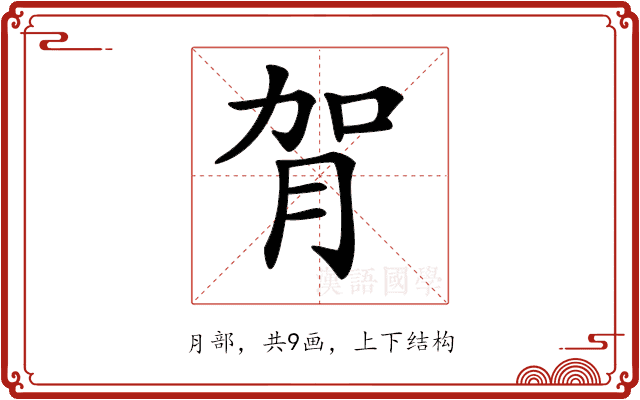 〔𦙺〕字是上下结构,可拆字为“加、⺝”或“加、⺼”。