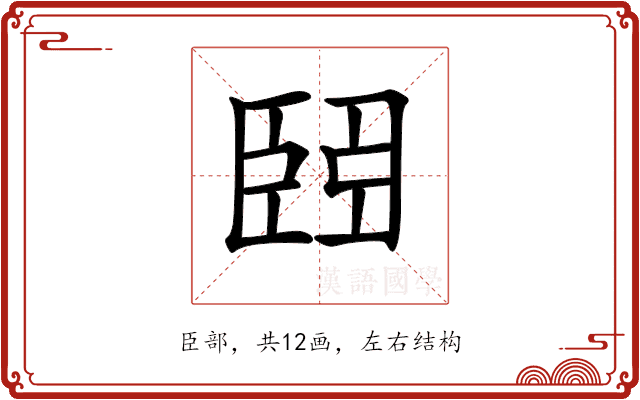 𦣩〕字拼音是(wǎng),部首是臣部,总笔画是12画